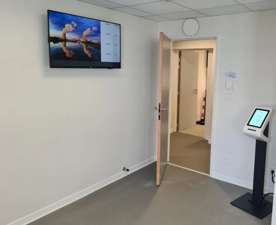 - Call screen with digital signage: clear display of calls and real-time guidance to the various boxes.