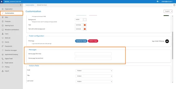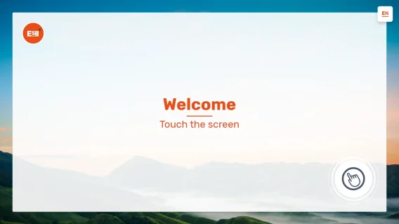 → On the kiosk’s welcome screen, a customizable text scrolls in all the languages configured for the location.