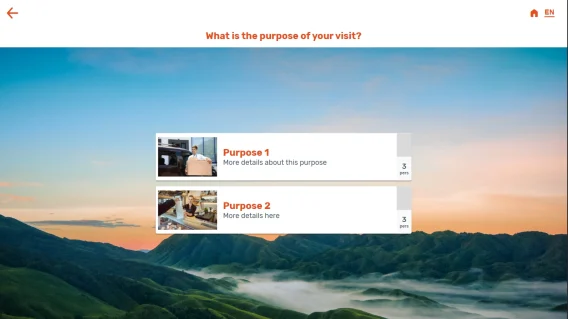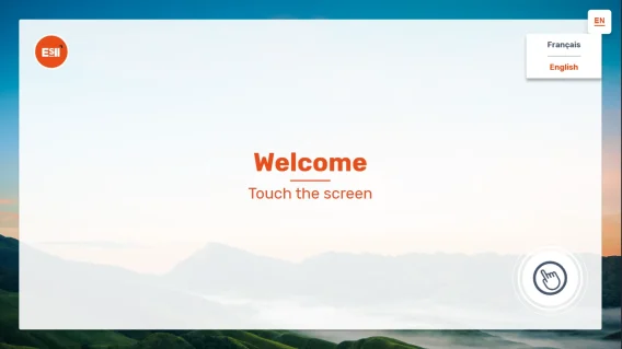 → To select a language on the kiosk, click on the drop-down list in the top right-hand corner of the screen. By default, the location language is displayed.