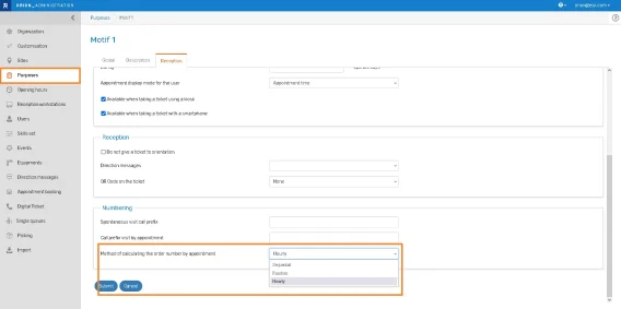 - Sequential mode : the numbers are in the order of the appointments scheduled for the same prefix on the location, whether they have arrived or not. Thus, the first scheduled appointment will have the number 1, the second the number 2 and so on.