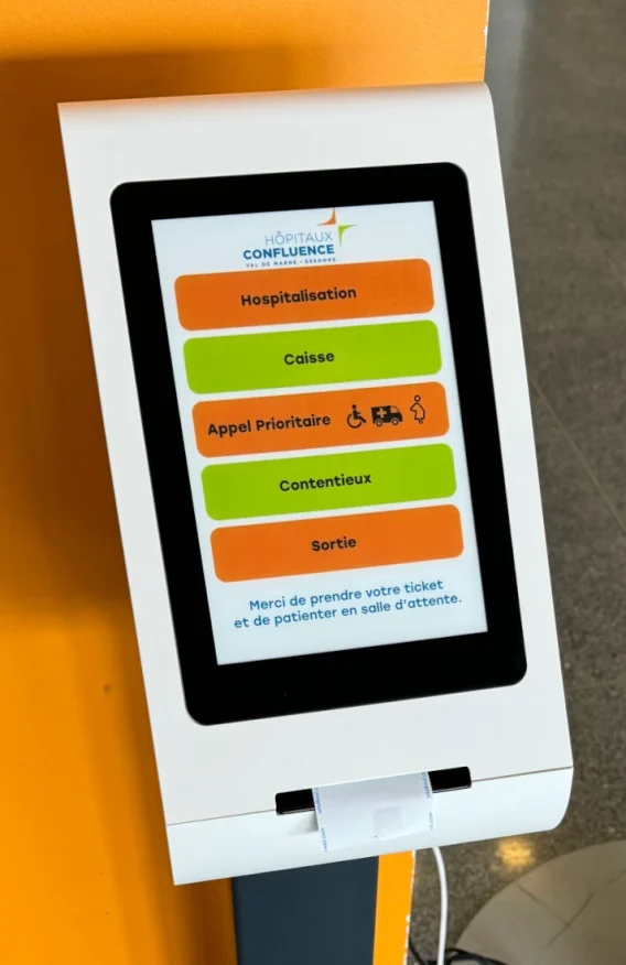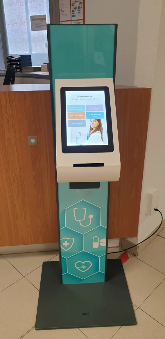 Its backlit touch screen makes it possible to offer a simple reception scenario, including up to 12 services. By simply changing the backlight paper on which the different services are printed, the Keo-e upgrades according to the needs of the reception.