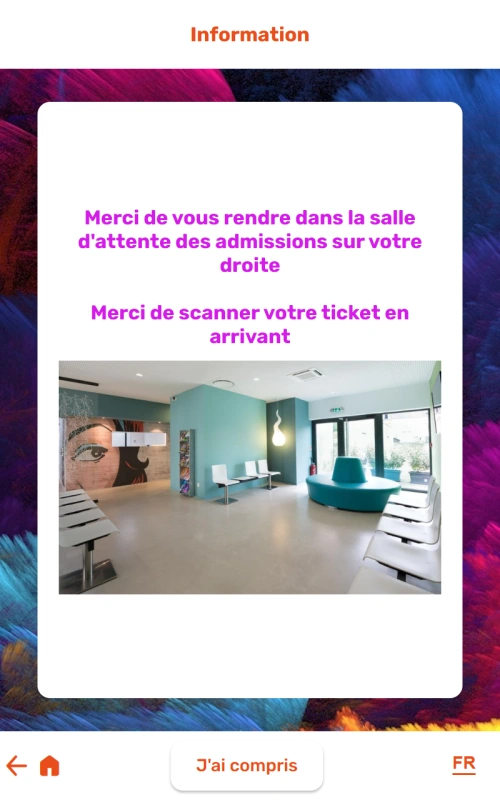 • Le message d’orientation est désormais affiché de manière indépendante et avant l’animation de prise de ticket, ce qui permet :