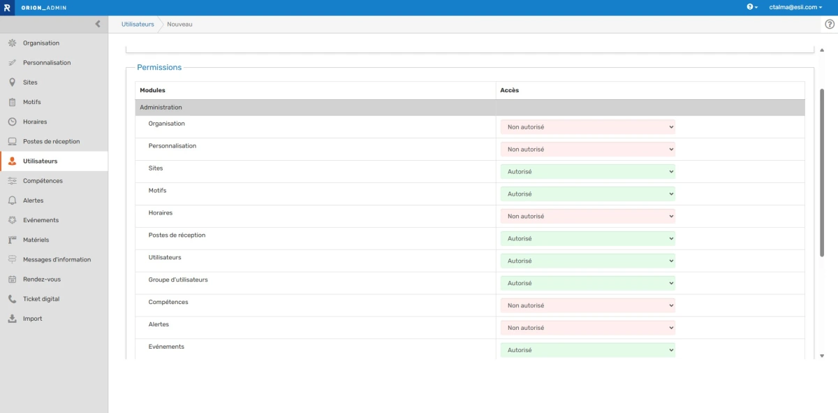 Cette permission permet de bloquer l’ajout, la modification et la suppression d’un groupe d’utilisateurs. Elle est conditionnée à la détention de l’autorisation sur les utilisateurs.