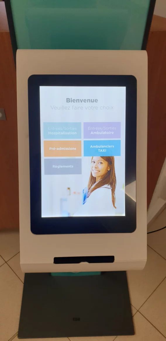 Connected reception kioskEen elegante kiosk, gemakkelijk te installeren en te configureren.